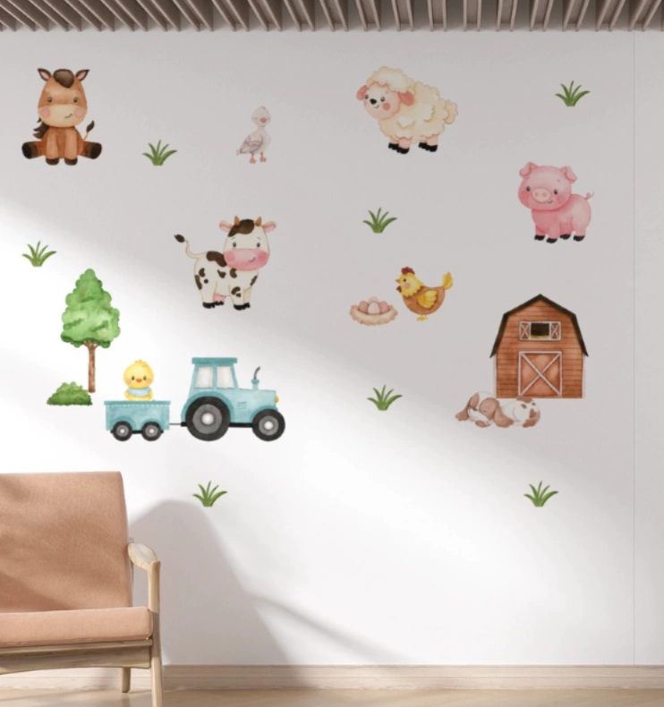 Kit com 20 adesivos de parede Fazendinha