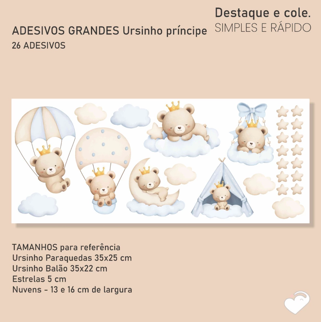 Características: - 1cartela com 26 adesivos ao total - Vinil fosco cortado digitalmente- Tema Ursinho