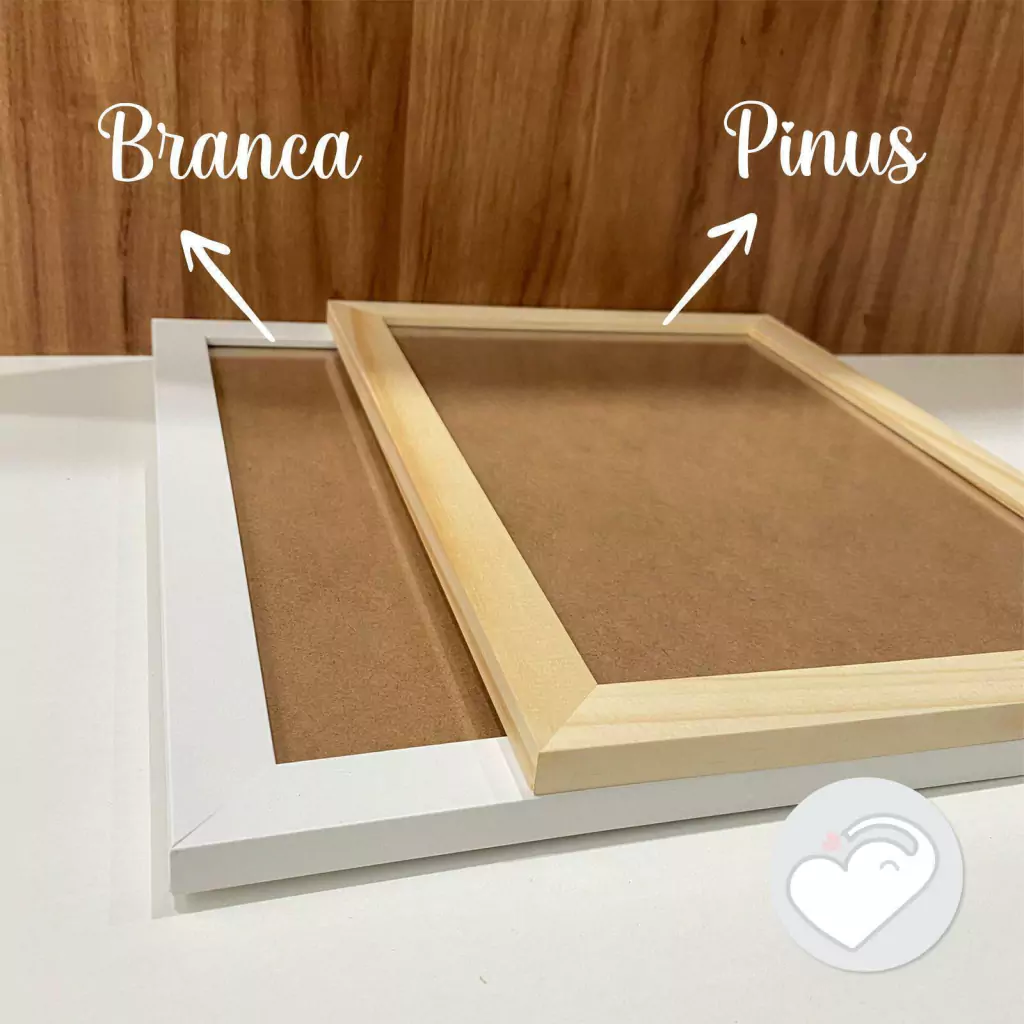 Moldura em madeira de reflorestamento, com acabamento e vidro frontal.